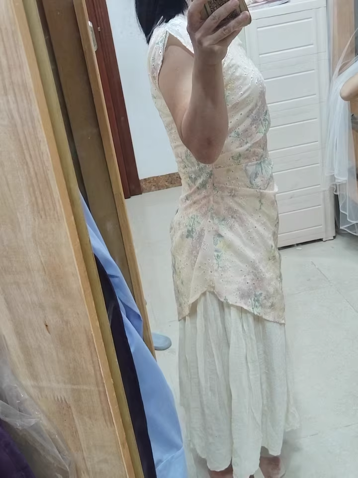 IRREGULAR FAUX TWO-PIECE EMBROIDERED CHEONGSAM DRESS KFN2833
